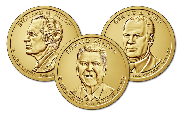 Uncirculated P (Philadelphia) and D (Denver) Mint Coins - Three Presidential Dollar Coins were released during 2016 honoring Richard Nixon, Gerald Ford, and Ronald Reagan. Get all 6 2016 Presidential Dollar Coins at one great price. Price: $19.99 |