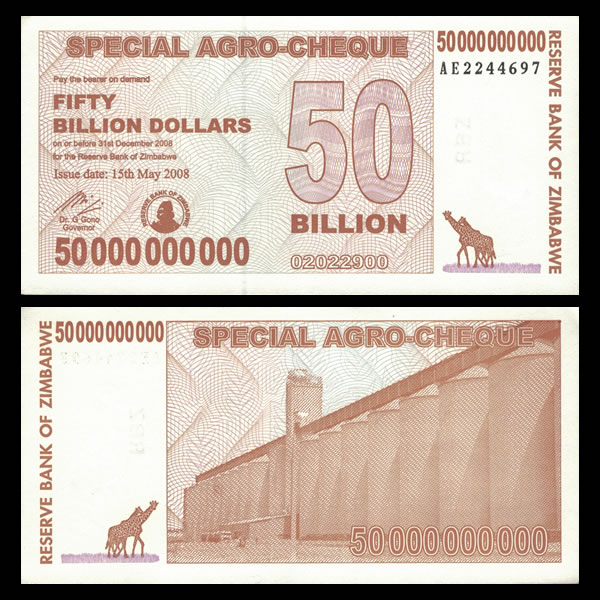 - 2008 Zimbabwe 50 Billion Dollar Banknote